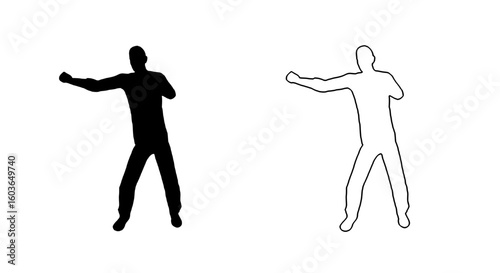 Мужчина играет с собакой в векторе. Значок любителя домашних животных. Владелец дрессирует щенка, бросающего палку, выделенную на белом фоне