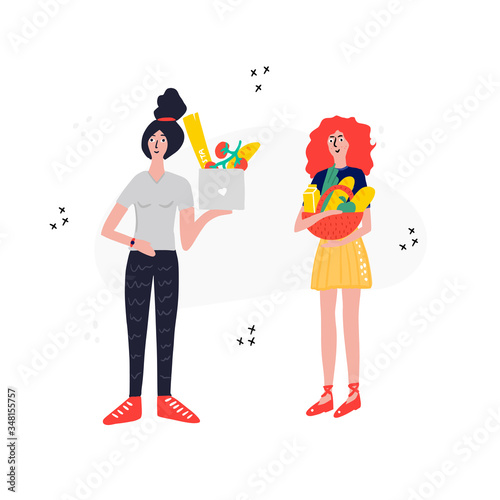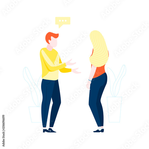 Мужчина вручает женщине векторную иллюстрацию с упакованными подарками и воздушными шарами. Счастливая любящая семейная пара с подарками, выделенными на белом фоне. Любовные отношения и концепция сюрприза