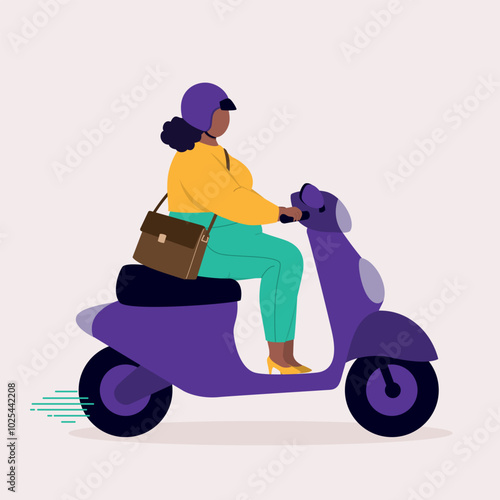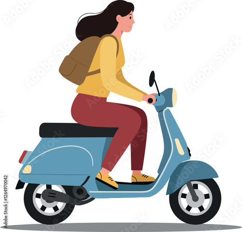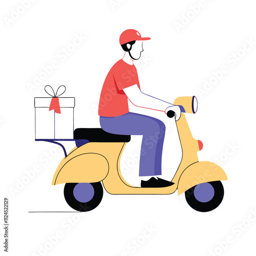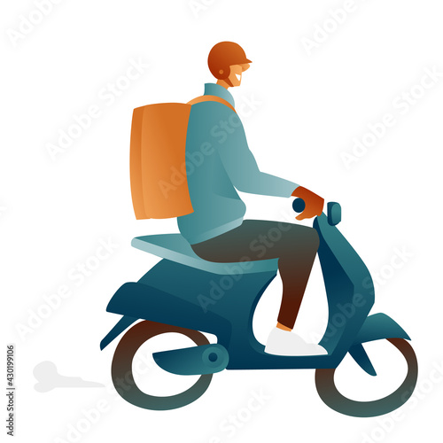 Мужчина, едущий на векторной иконке мопеда-скутера. Мотоциклист, выделенный на белом фоне. Персонаж-мотоциклист