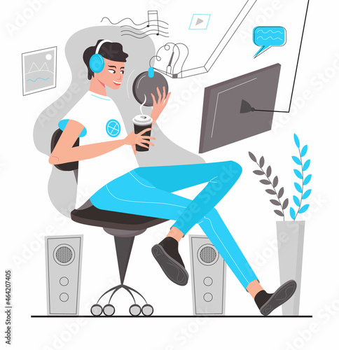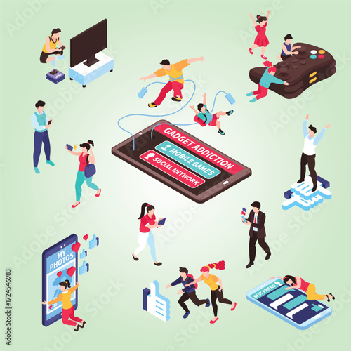 Молодой человек, бегущий по беговой дорожке, тренирующийся с личным тренером онлайн, плоская векторная изометрическая иллюстрация. Онлайн-фитнес, домашние тренировки, фитнес-блог.