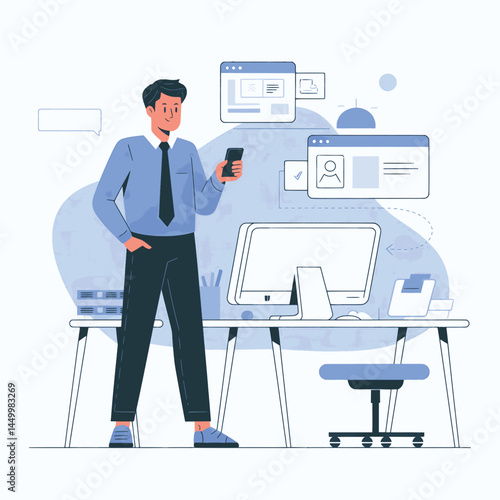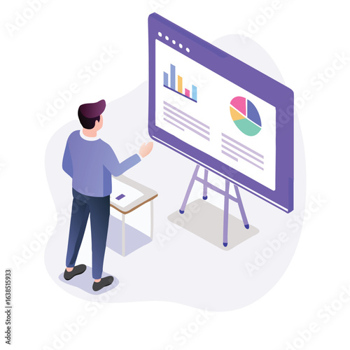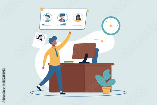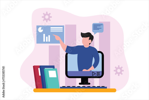 Молодой человек поет в караоке. Векторная иллюстрация в плоском стиле. Элемент концептуального дизайна хобби в области музыки, исполнительского искусства.