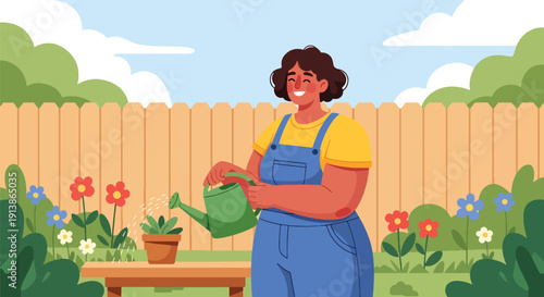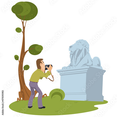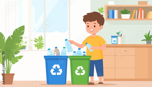 Человек, бросающий мешок для мусора в мусорное ведро, плоская векторная иллюстрация. Работа по дому, домашние хлопоты, ведение домашнего хозяйства, уборка дома.