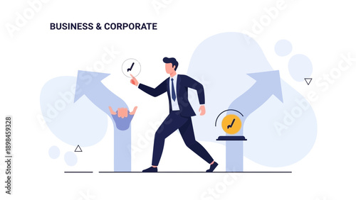Мужчина примеряет разные туфли в обувном магазине. Векторная иллюстрация концепции покупок в плоском дизайне стиля.