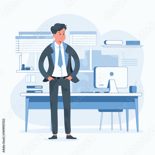 Мужчина, использующий векторную иконку облачного банковского сервиса. Управление благосостоянием, обсуждение бюджета конференции. Парень, сидящий за столом перед компьютером