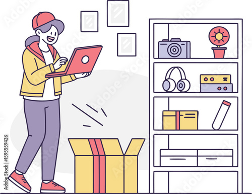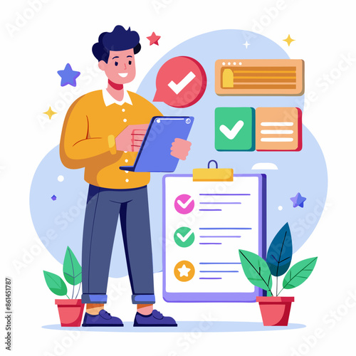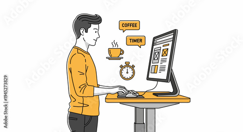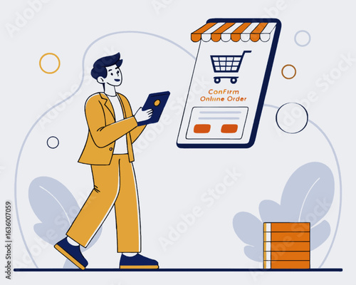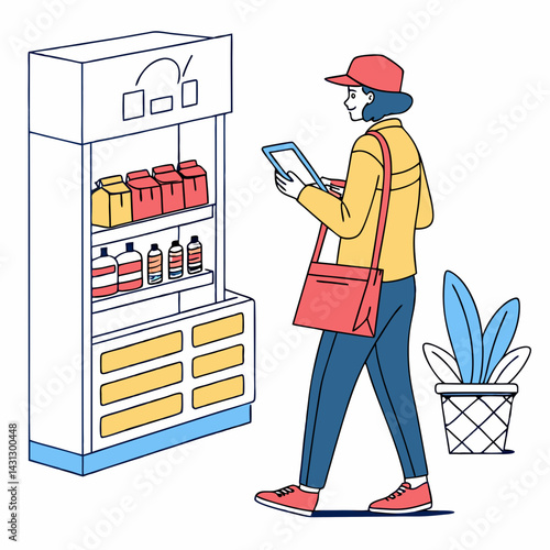 Человек, использующий векторную иллюстрацию для самостоятельного заказа еды и напитков. Цифровое кафе быстрого питания, современные технологии на экране интерактивного устройства