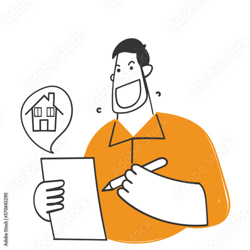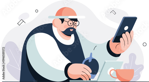 Человек, использующий векторный значок смартфона, изолированный на белом фоне