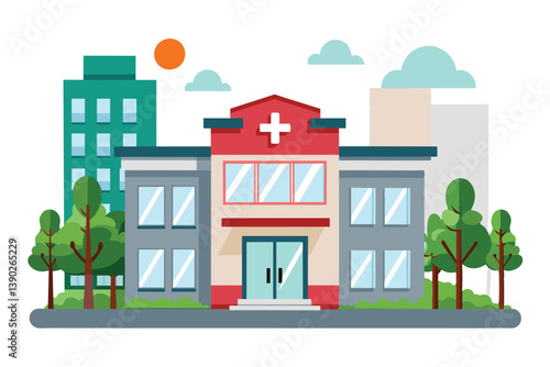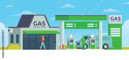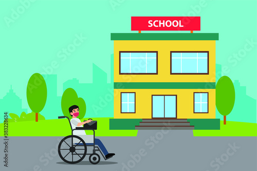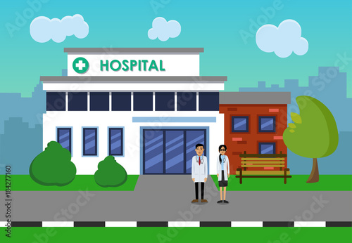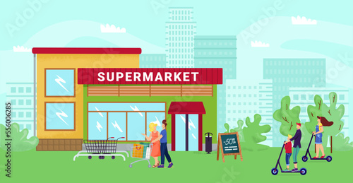 Мужчина ждет общественный транспорт на автобусной остановке. Векторная иллюстрация городского пейзажа города в плоском стиле. Элементы дизайна и иконки.