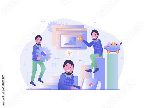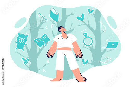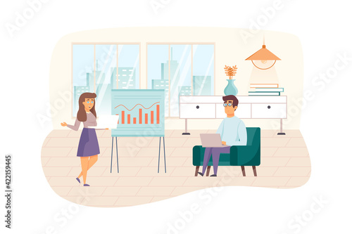 Мужчина моет окно в гостиной, плоская векторная иллюстрация. Работа по дому, домашние хлопоты, ведение домашнего хозяйства, уборка дома.
