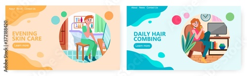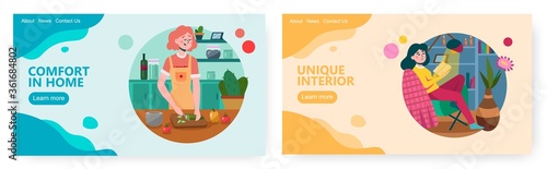 Мужчина смотрит телевизор и отдыхает дома. Женщина ухаживает за растениями в домашнем саду. Досуг и свободное время. Иллюстрация концепции. Векторный шаблон дизайна веб-сайта. Иллюстрация сайта целевой страницы.