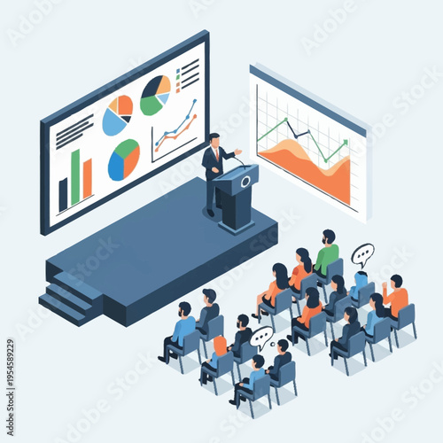 Мужчина смотрит таргетированную телевизионную рекламу, сидя на диване, плоская векторная изометрическая иллюстрация. Адресуемые технологии телевизионной рекламы, адресуемые МЕДИА, целевой маркетинг.
