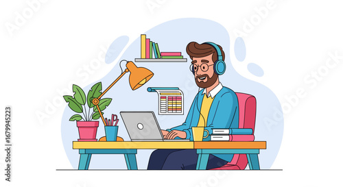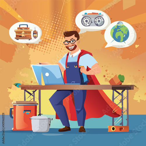 Человек в стеклянном шлеме с дыхательной системой. Загрязнение воздуха и защита от вируса covid. Векторная иллюстрация. Дышите свежим воздухом.