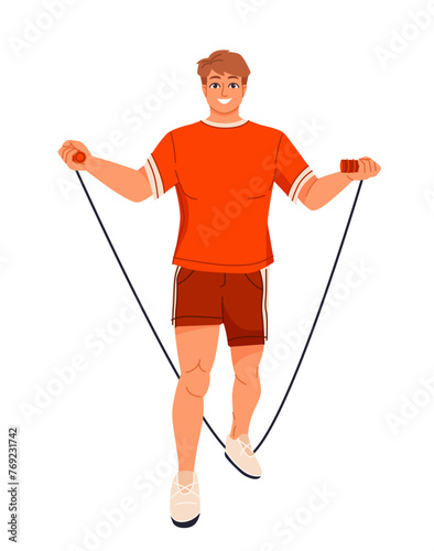 Человек со скакалкой векторный значок, изолированный на белом фоне