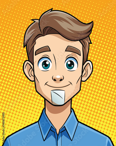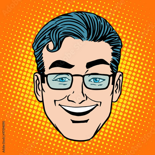 Мужчина в темных очках со знаком доллара. Векторная иллюстрация в стиле ретро поп-арт. Концепция успеха в бизнесе. Богатый человек, думающий о деньгах.