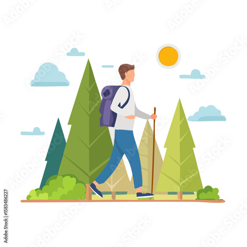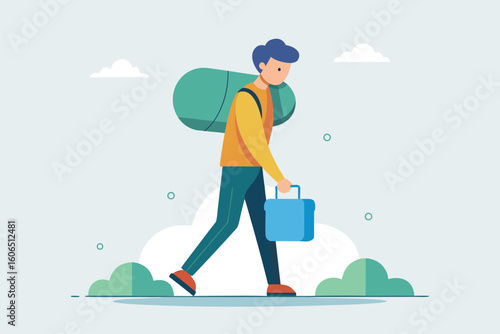 Векторная иллюстрация человека, держащего листья марихуаны в одной руке и бонг для курения марихуаны в другой руке. Элемент дизайна в плоском стиле концепции наркомании.