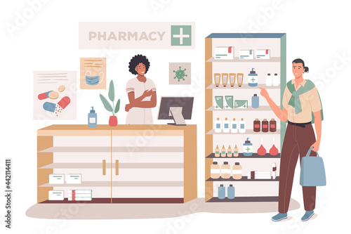 Продуктовый киоск торгового центра Market place, набор киосков, плоская векторная изолированная иллюстрация. Люди покупают кофе, хот-доги, мороженое, пиццу, суши, салат.