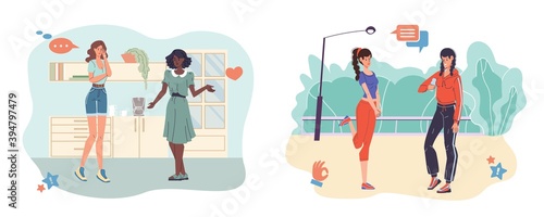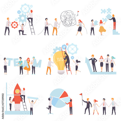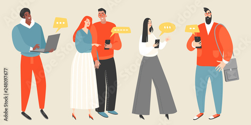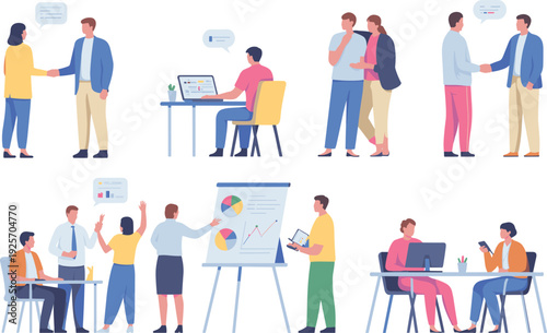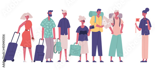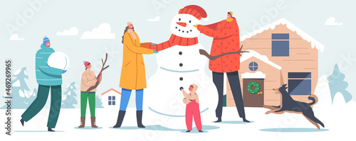 Векторная иллюстрация церемонии бракосочетания. Счастливые жених и невеста и их родители стоят рядом с праздничной цветочной аркой. Традиционное свадебное мероприятие