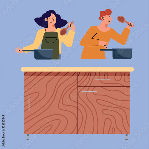 Супружеская пара, парящаяся в сауне с векторной иконкой дубовых веников, изолированной на белом фоне.