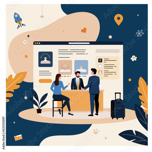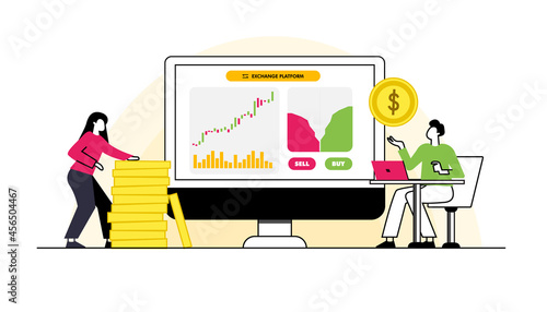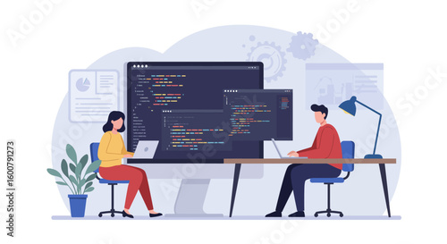 Векторная плоская иллюстрация математической концепции. Математические формулы на большом мониторе компьютера, крошечные студенты, изучающие математику, профессор университета, пишущий формулы, уравнения, рисующий график функций на классной доске.