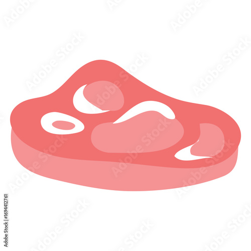 Измельчение мяса векторным ножом мясника, изолированным на белом фоне. Нарезка стейка из свинины, баранины или говядины с беконом для приготовления обеда на ужин. Концепция приготовления барбекю