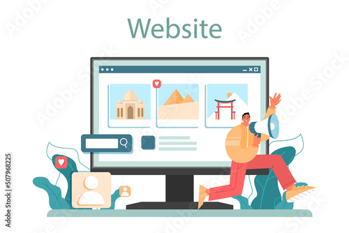 Мясной магазин, плоская векторная иллюстрация. Продавец стоит у витрины холодильника со свежей свининой, говядиной, колбасой. Фермерский продовольственный рынок. Мясная лавка. Супермаркет, продуктовый магазин, мясная секция, отдел.