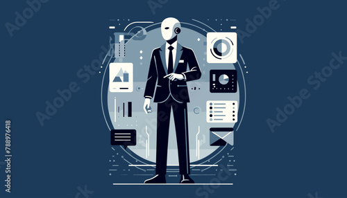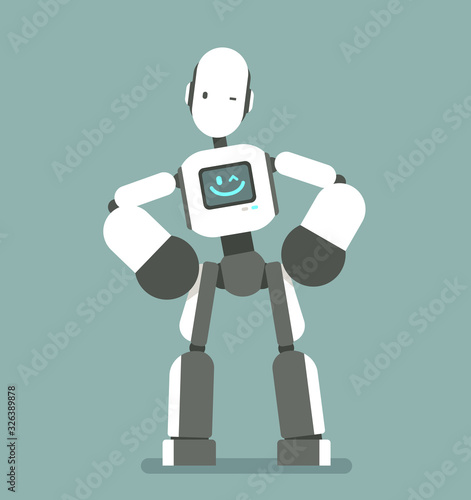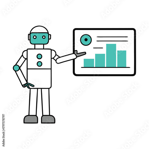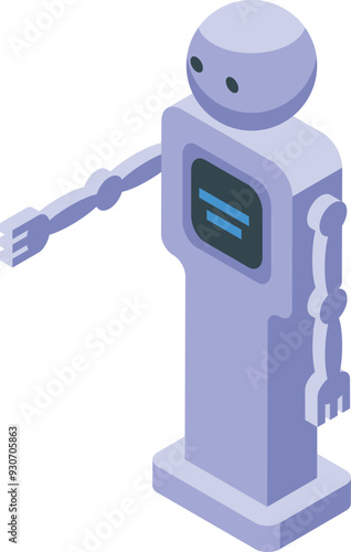 Механический дроид-робот с 3d-векторной иконкой. Изолированная машина с искусственным интеллектом на белом фоне