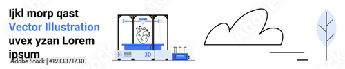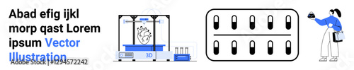 Вектор медицинской 3d-печати. Прототипирование органов для трансплантации на 3d-принтере в больничной лаборатории. Иллюстрация здравоохранения и медицины. Технология биопечати печени