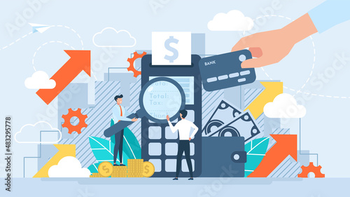 Иллюстрация дизайна векторного плоского стиля медицинских исследований. Концепция медицинского осмотра с крошечными врачами, большим человеческим сердцем и глазом для веб-баннера, страницы веб-сайта и т.д.