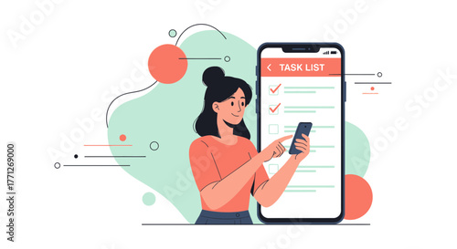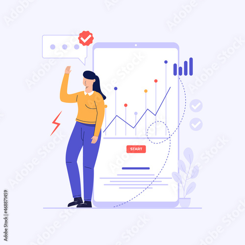 Женщина, прикасающаяся к красному сердцу с пульсом на экране смартфона, векторная плоская иллюстрация, изолированная на белом фоне. Медицинское приложение, онлайн-медицина, телемедицина, концепция мобильного здравоохранения.