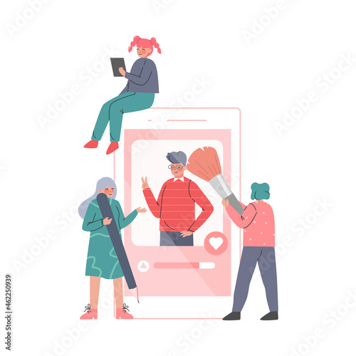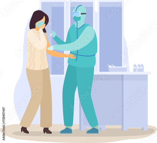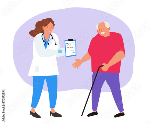 Врач-педиатр и мать с дочерью, сидящие на смотровом столе, векторная плоская иллюстрация, изолированная на белом фоне. Детская медицина и здравоохранение, медицинский осмотр, консультация.