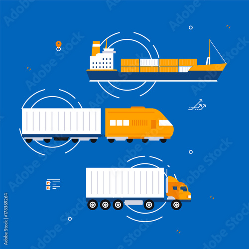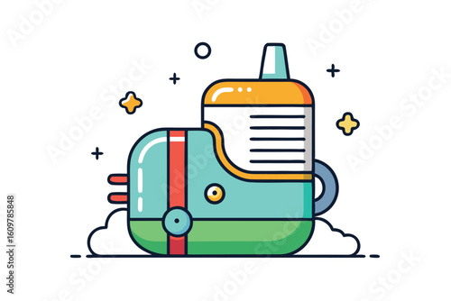 Векторная плоская иллюстрация концепции медицинской помощи. Коробка с аптечкой первой помощи, значок врача, медицинский рецепт, стетоскоп, шприц с красной инъекцией, пузырек с таблетками. Здравоохранение и медицинский плакат-баннер.