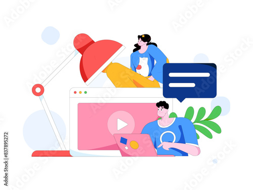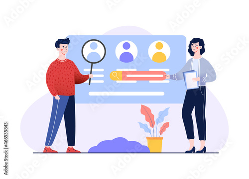 Векторная иллюстрация большого монитора компьютера и персонажей мультфильмов людей со шприцем, увеличительным стеклом, ноутбуком. Телемедицина, концепция онлайн-медицинской консультации для веб-баннера, страницы веб-сайта и т.д.