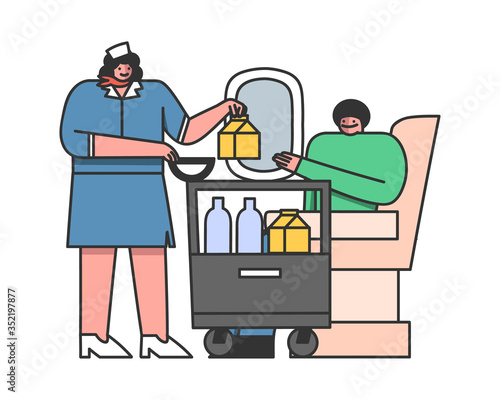 Средневековая таверна с векторной иконкой официантки и клиента, изолированной на белом фоне.