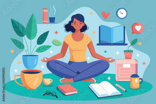 Дизайн целевой страницы для медитации, набор шаблонов баннеров веб-сайта, плоская векторная иллюстрация. Женщина медитирует, сидя в позе йоги. Расслабление, гармония, внимательность.