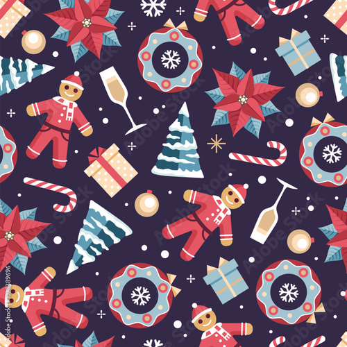 Счастливого Рождества и счастливого нового года поздравительная открытка и фоновый шаблон. Зимний праздник векторная иллюстрация в винтажном стиле. Рождественская елка и игрушки, Санта-Клаус. 2021 новый год рисованный плакат.