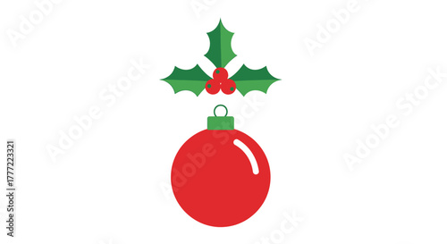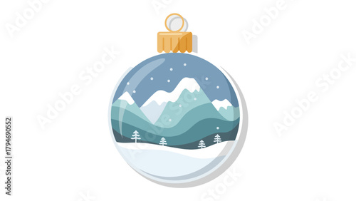 Многослойный вырезанный из бумаги рождественский елочный шар с зимним ночным пейзажем, семьей оленей внутри и ягодой падуба, векторная изолированная иллюстрация. Композиция с Рождеством и Новым годом в стиле бумажного искусства.