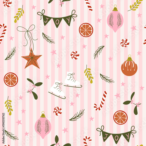 Фоновый шаблон и баннер с Рождеством и новым годом. Векторная иллюстрация зимнего праздника в винтажном стиле. Рождественская елка и игрушки. новогодняя открытка, нарисованная от руки на 2023 год.