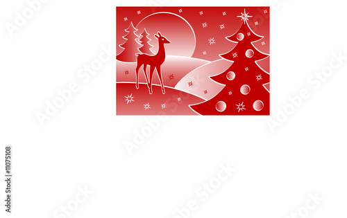 Шаблон векторного дизайна поздравительной рождественской открытки. Вырезанная из бумаги зимняя композиция в стиле рукоделия с силуэтом белого оленя и ягодами остролиста по кругу.