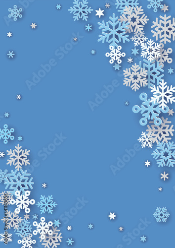 Шаблон дизайна векторного плаката с Рождеством и Новым годом с красивыми вырезанными из бумаги снежинками и пространством для копирования.