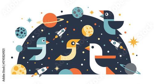 Мужчина и женщина в очках виртуальной реальности сидят в креслах и взаимодействуют с виртуальной реальностью, летят в космическом пространстве, плоская векторная иллюстрация. Метавселенная или цифровой мир.