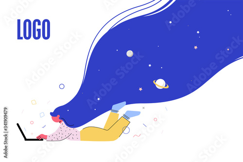 Метавселенная или виртуальный мир. Молодой мальчик в очках виртуальной реальности, взаимодействующий с виртуальной реальностью, плоская векторная иллюстрация. Технология виртуальной реальности, игровой плакат metaverse, шаблон баннера.