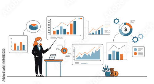 Вектор метавселенной. Женщина в очках виртуальной реальности и гарнитуре, совершающая 3d-покупки в виртуальном магазине иллюстрация