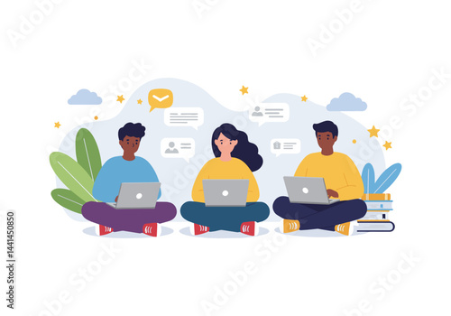 Вектор метавселенной. Иллюстрация технологии будущего. Женщина, использующая гарнитуру виртуальной реальности для игры или бизнеса. Футуристическая инновация, виртуальное пространство для работы и общения