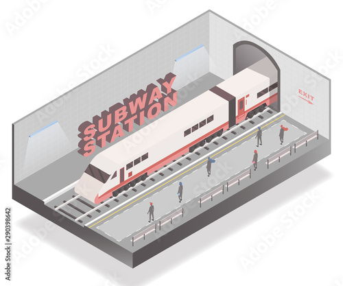 Вектор входа на станцию метро. Иллюстрация изометрического туннеля метро. Часть железнодорожной линии. Перспектива, выделенная на белом фоне