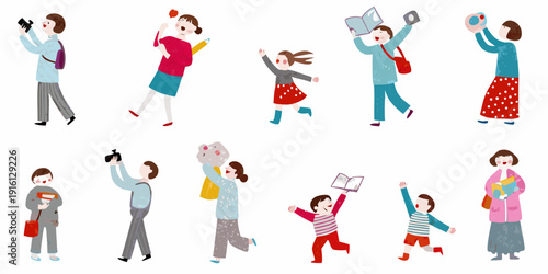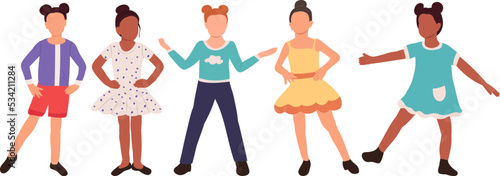 Детский военный оркестр марширует, играя на музыкальном инструменте. Праздничный парад милой детской группы, выступающей с барабаном, духовым рожком, тромбоном и флейтой, идущей изолированно на белом фоне