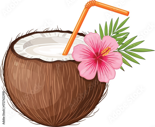 Векторная иконка, заливаемая молоком и жидким шоколадом в кокос. Элемент дизайна для сладких изделий, выделенный на белом фоне