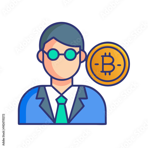 Майнер, держащий в руке векторную иконку ethereum, выделенную на белом фоне. Концепция криптовалюты