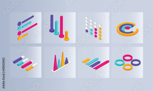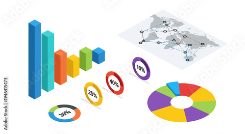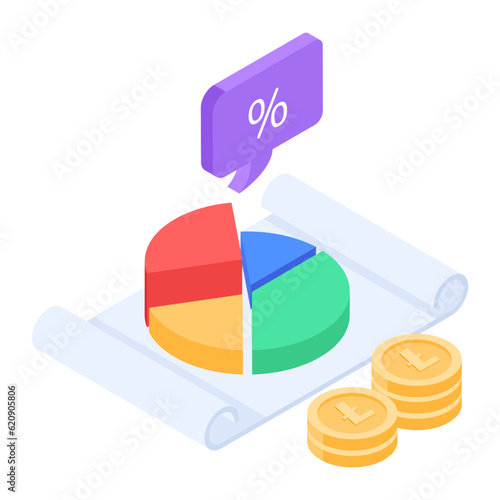 Плоская векторная иллюстрация концепции мобильной аналитики. Изометрический смартфон с цветной круговой диаграммой и гистограммой на экране. Взаимодействие пользователей с мобильными сайтами и приложениями.