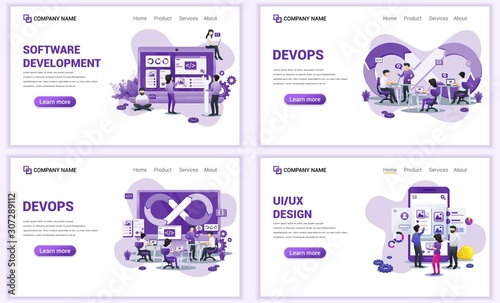 Экраны загрузки мобильных приложений. Рабочее место и офис в бизнесе, работа, образование. Шаблон векторного баннера меню для разработки веб-сайтов и мобильных устройств. Плоская иллюстрация дизайна веб-сайта.