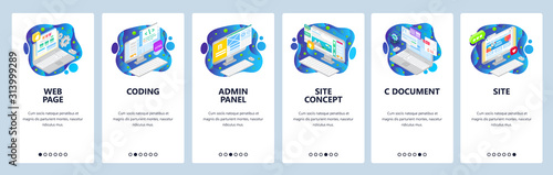 Экраны загрузки мобильных приложений. Цифровое искусство и акварельная живопись, 3d-рендеринг, рисование эскизов, шрифт. Шаблон векторного баннера меню для разработки веб-сайтов и мобильных устройств. Плоская иллюстрация дизайна веб-сайта.