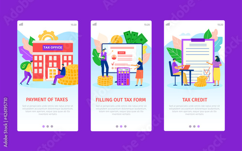 Экраны загрузки мобильных приложений. Образование, сертификат об окончании колледжа, финансовая помощь на учебу. Шаблон векторного баннера меню для разработки веб-сайтов и мобильных устройств. Плоская иллюстрация дизайна веб-сайта.